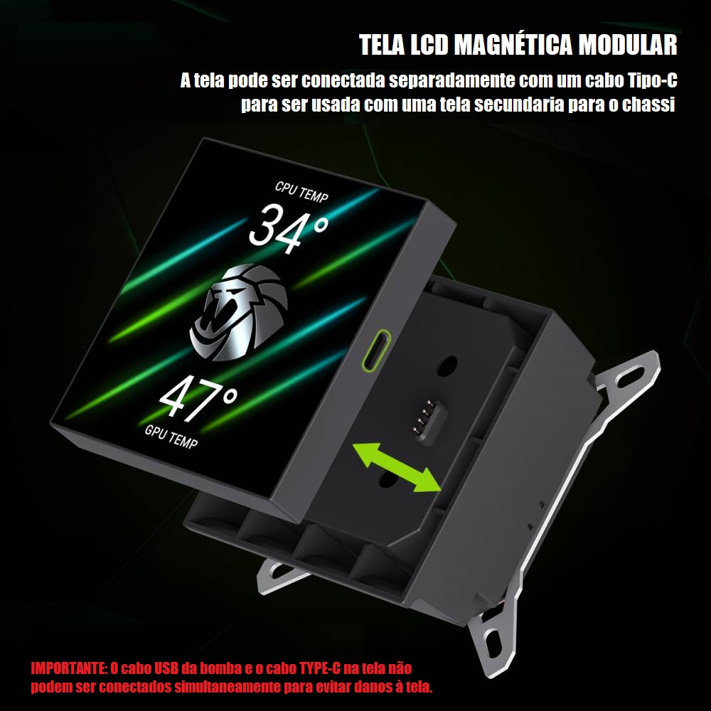 • Tela LCD magnética modular: Facilmente removível e giratória para ângulos de visão ideais e personalização sem esforço.