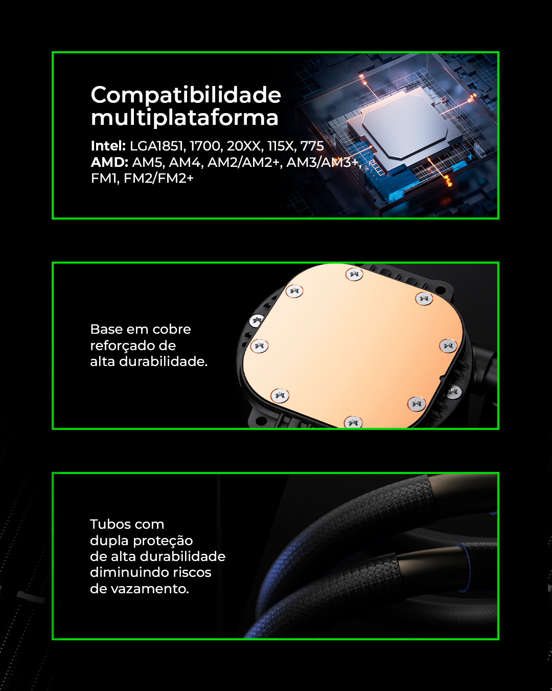 -Dimensões do radiador: 275(L)x 120(A)x 52(P)mm