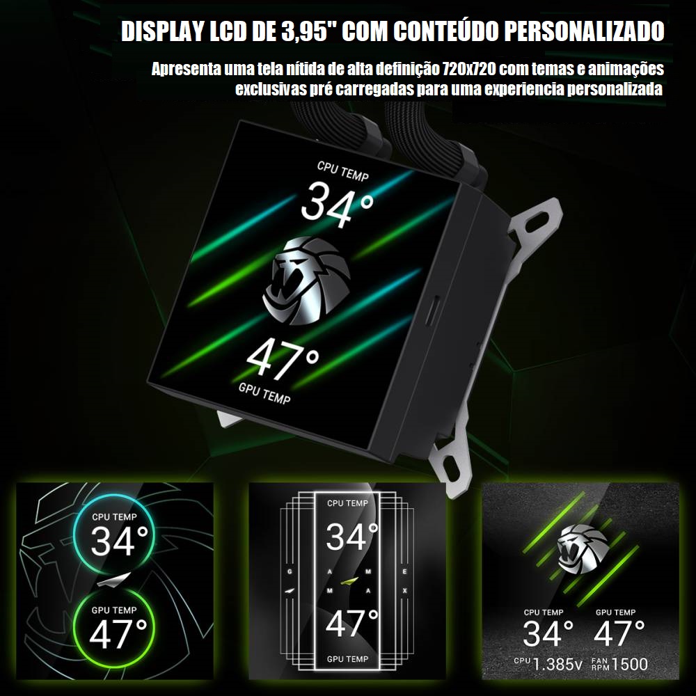 • Tela LCD de 3,95" com conteúdo personalizado: Apresenta uma tela nítida de alta definição de 720×720 com temas e animações exclusivos pré-carregados para um toque personalizado.