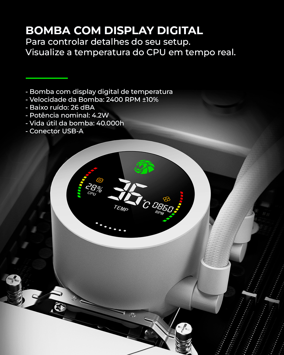 • Resfriamento inteligente: Ajusta automaticamente a velocidade da ventoinha para um desempenho ideal.